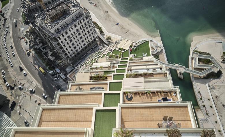 The development of the terraced tower allowed us to create a form that would break the monotony of the residential towers and compact monotone Al Reem Island in Abu Dhabi and at the same time to have apartments with generous terraces overlooking the sea. The trend of stepped terraces also allows you to undo the sense of vertigo that you have on towers of this height and the apartments with a head for excellent visibility, unique to the city of Abu Dhabi.