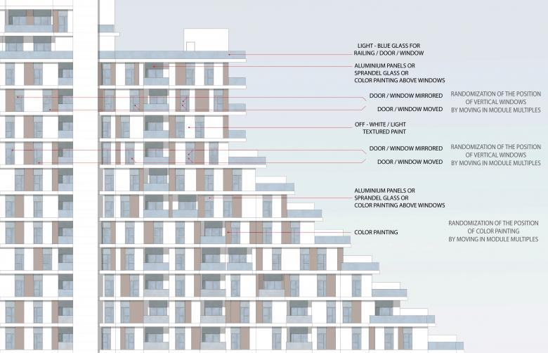 The building, which is spread over 29 floors, of which two of the podium, with 3 levels of underground parking, consists of 481 apartments and duplexes of various sizes, commercial spaces, public facilities such as swimming pool and gymnasium, 600 parking spaces , for a total area of about 80,000 square meters,