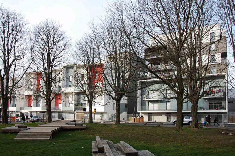 The re-interpreted detached houses located along the Moulin Vert street comprise a relational building with a street balcony facing the interior of the block, which serves to access housing while providing a co-living space and promotes cohesion and exchange among inhabitants.