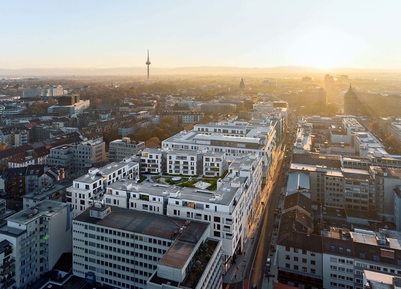 Das Architekturbüro blocher partners entwirft mit dem multifunktionalen Stadtquartier Q 6 Q 7 eine vertikale Stadt aus Gastronomie, Gewerbe, Freizeitangebote, Wohnen und einem Hotel. Im Herzen von Mannheim ist so ein lebendiges, urbanes Quartier mit vielseitiger Nutzung und hoher Aufenthaltsqualität entstanden. Die Architektur integriert das Neubau-Ensemble sensibel in das städtebauliche Umfeld. Verschiedene Zugänge sorgen für eine konsequente Vernetzung innerstädtischer Wege. Harmonisch und zugleich selbstbewusst fügt sich Q 6 Q 7 mit diesem offenen Konzept ins traditionelle Stadtbild. Von Anfang an ging es den Architekten und Stadtplanern um mehr als eine Mall im Zentrum von Mannheim, ihnen schwebte ein urbaner Kristallisationskern vor, der auch nach Ladenschluss belebt ist. Dazu nutzte das Architekturbüro die besondere Topographie Mannheims, dessen Quadratraster an der Grenze der ehemaligen Stadtmauer von einem Kreisbogen geschnitten wird. Unter einem großen Glasdach und einer transparenten Verbindungsbrücke spannt sich ein neuer Stadtraum auf. Er verbindet zwei korrespondierende Häuser und damit auch die Quadrate Q 6 und Q 7, die ihrerseits das Wegenetz zwischen Kunststraße und Fressgasse erweitern und stärken.