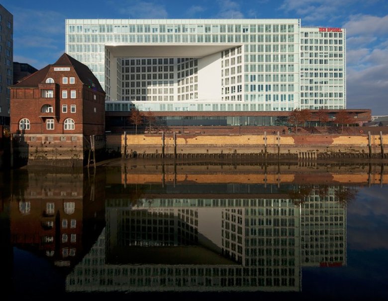 Das zentrale Versprechen, das der Entwurf des dänischen Architekten Henning Larsen für die Unternehmenszentrale des Spiegel-Verlages abgibt, lautet Offenheit und Kommunikation. Die Tragwerksplanung unterstützt den Entwurfsansatz durch geschickte Stützenstellung und Anordnung der aussteifenden Kerne. Als "Fenster zur Stadt" springen die Obergeschosse 3 bis 12 an der Nordseite um ca. 10 Meter zurück und lassen so das 13. Obergeschoss weit auskragen. An der Südseite wird dieses Prinzip ebenfalls aufgegriffen. Als kommunikatives Herz dient das großzügige Atrium, das für besonders kurze interne Wege mit zahlreichen Brücken erschlossen ist.