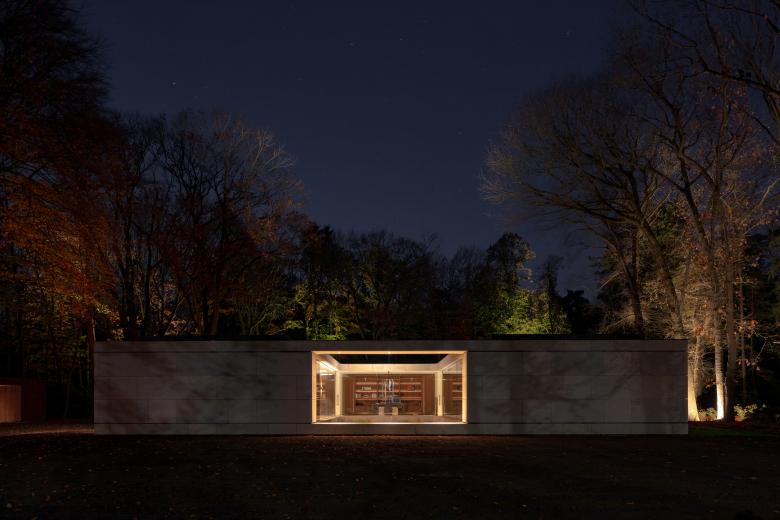 From the road, Villa JM is a closed stone rectangle, pierced only by one large opening. This monumental opening reveals its inner courtyard garden, giving a hint of the warm interior. By raising the entire building, including all terraces, some 40cm above ground level, we add to its monumentality and presence in the landscape, while providing the villa with several integrated terraces. The glass-walled courtyard garden translates the surrounding landscape into a domestic context. A small annex houses the bike garage, dog’s quarters and covered parking.