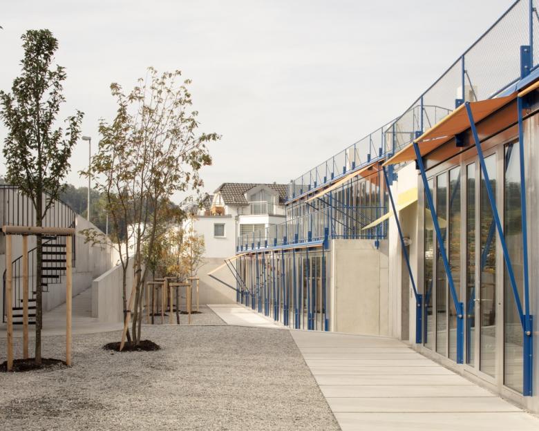 Als textiler Sonnenschutz sind Fallarmmarkisen mit Sonderlängen bis 250cm eingesetzt worden