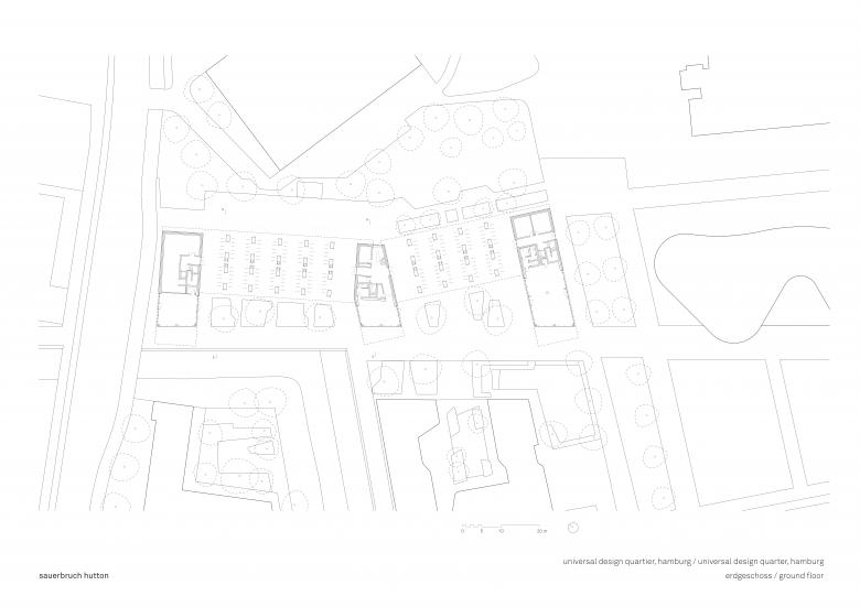 Mit seiner kammartigen Struktur bindet sich der Neubau in den kleinteiligeren Maßstab seiner Umgebung ein und schreibt damit die städtebauliche Figur der benachbarten Behörde für Stadtentwicklung und Wohnen entlang einer vielgenutzten Fußweg- und Fahrradverbindung fort.