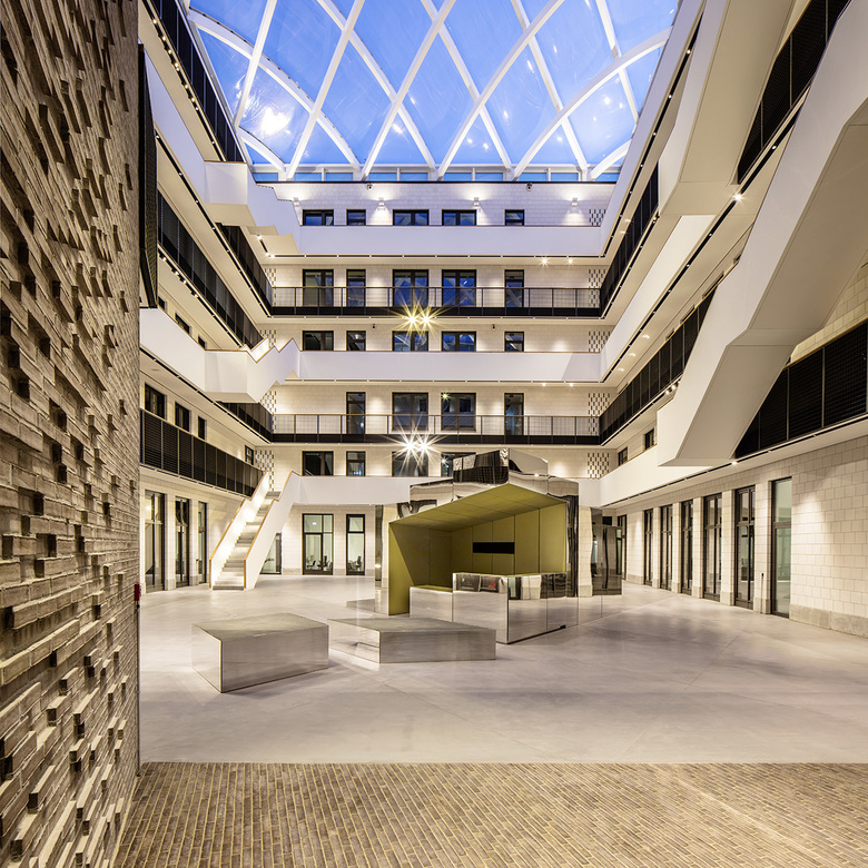 Der Zeisehof liegt in zentraler Lage im Hamburger Stadtteil Ottensen – ein Ort, dessen ganz eigene, urbane Atmosphäre von vielfältigen Gegensätzen und von seiner Geschichte als ein bedeutender Industriestandort Norddeutschlands lebt. Diesem dynamischen, spannungsreichen Ort begegnen wir mit einem Gebäude, dessen Architektur sich nicht aufdrängt, das sich behutsam in den lebendigen Kontext einfügt und dennoch nicht darin untergeht, sondern mit kraftvoller Ruhe und gradliniger Eleganz ganz selbstverständlich seinen Platz einnimmt. Die klare Architektursprache aus zeitloser, unaufgeregter Materialwahl und ruhig gegliederter Fassadengestaltung nimmt starke Bezüge zur Historie des Ortes auf und interpretiert die Fabrikarchitektur der angrenzenden Zeisehallen auf eigene und moderne Art und Weise. Herzstück des Gebäudes ist das zentrale Atrium, das ein Folienkissendach auf einer gebogenen Holzbinderkonstruktion überspannt.