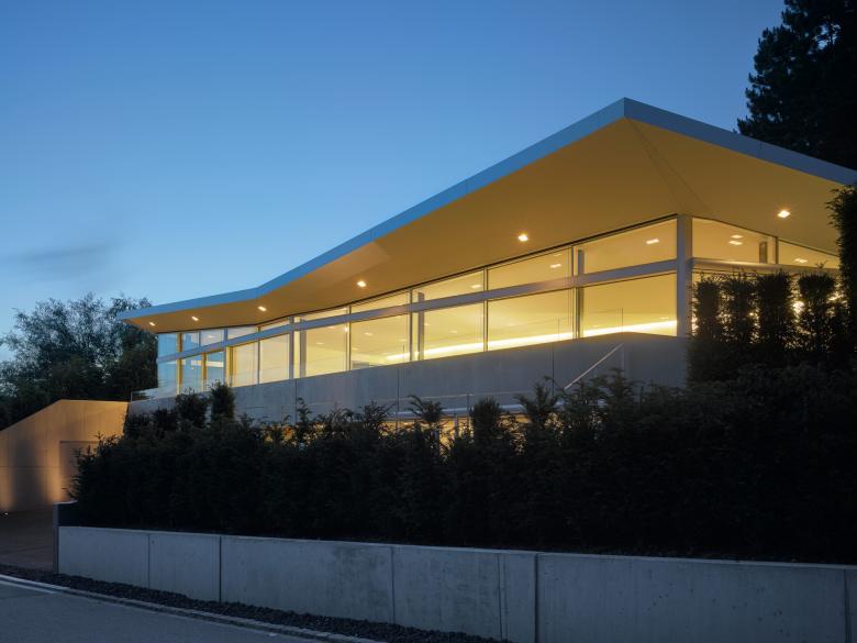 PAVILION HOUSE is located at the coveted Gold Coast of Zurich. The nurtured green roof of the villa blends in its nature surrounding. The advantageous position of the villa complemented by large bay windows facing Lake Zurich and Alps, suffuse the home with light in abundance. PAVILION HOUSE has a living space over two floors, surrounding terrace, an artist studio and gallery to display the owner’s modern art collection. The villa is equipped with a large spa area, sauna, private garden and a garage with a parking capacity of six cars. More at https://www.studioforma.ch/architecture-projects/residential/contemporary-classical-mansion
