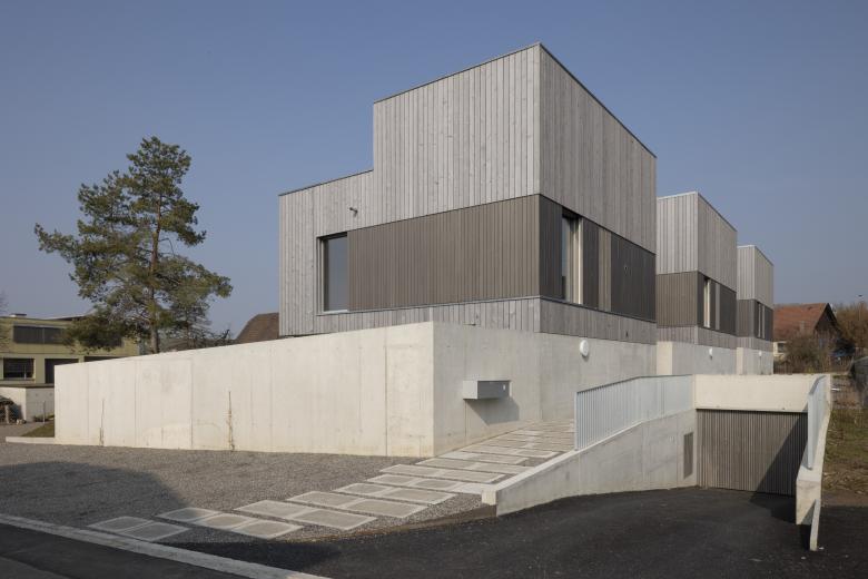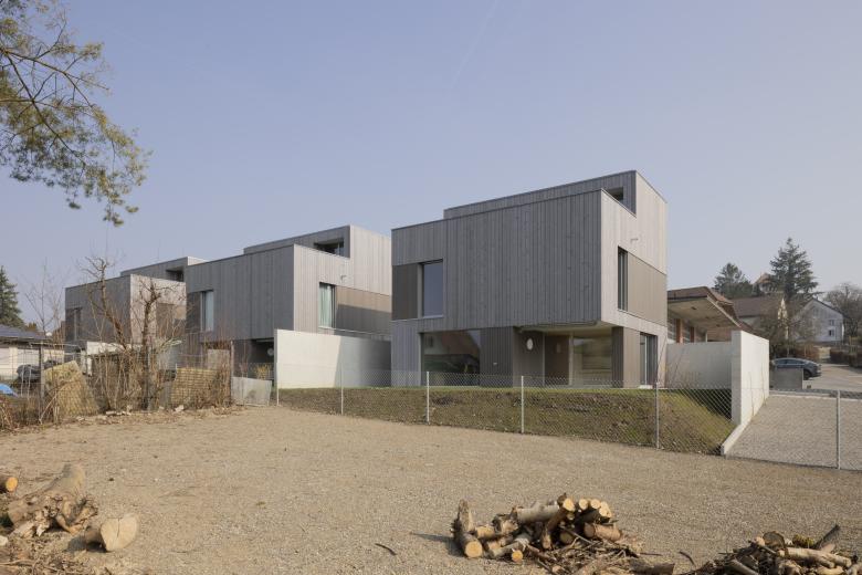 Die Wohnhäuser werden von der Quartierstrasse über die rückwärtige Zugangs- und Spielzone, sowie über die Tiefgarage mit separaten Hauszugängen zum Untergeschoss erschlossen. Alle Häuser haben einen, in verschiedene Zonen gegliederten Garten, welcher durch eine Hofmauer aus Beton begrenzt wird und so einen hohen Grad an Privatheit bietet.