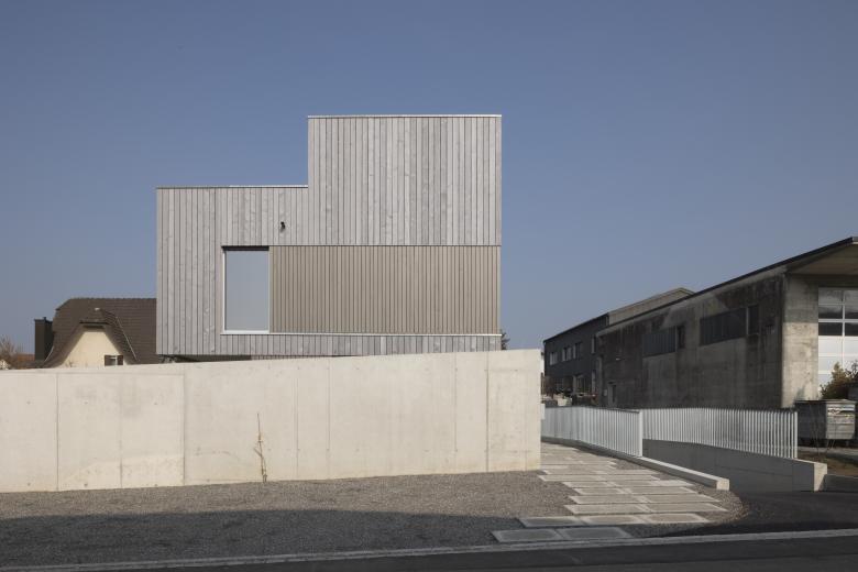 Die Tragstruktur ist in Massivbauweise erstellt und mit einer vorvergrauten hinterlüfteten Holzfassade versehen. Die Decken und einzelne Wände im Innern sind in rohem Sichtbeton belassen. Im Kontrast dazu steht der restliche Innenausbau mit verputzen Wänden in Weissputz, hochwertigem Fischgratparkett und farbigen Glasmosaik-Belägen in den Nassräumen.