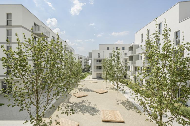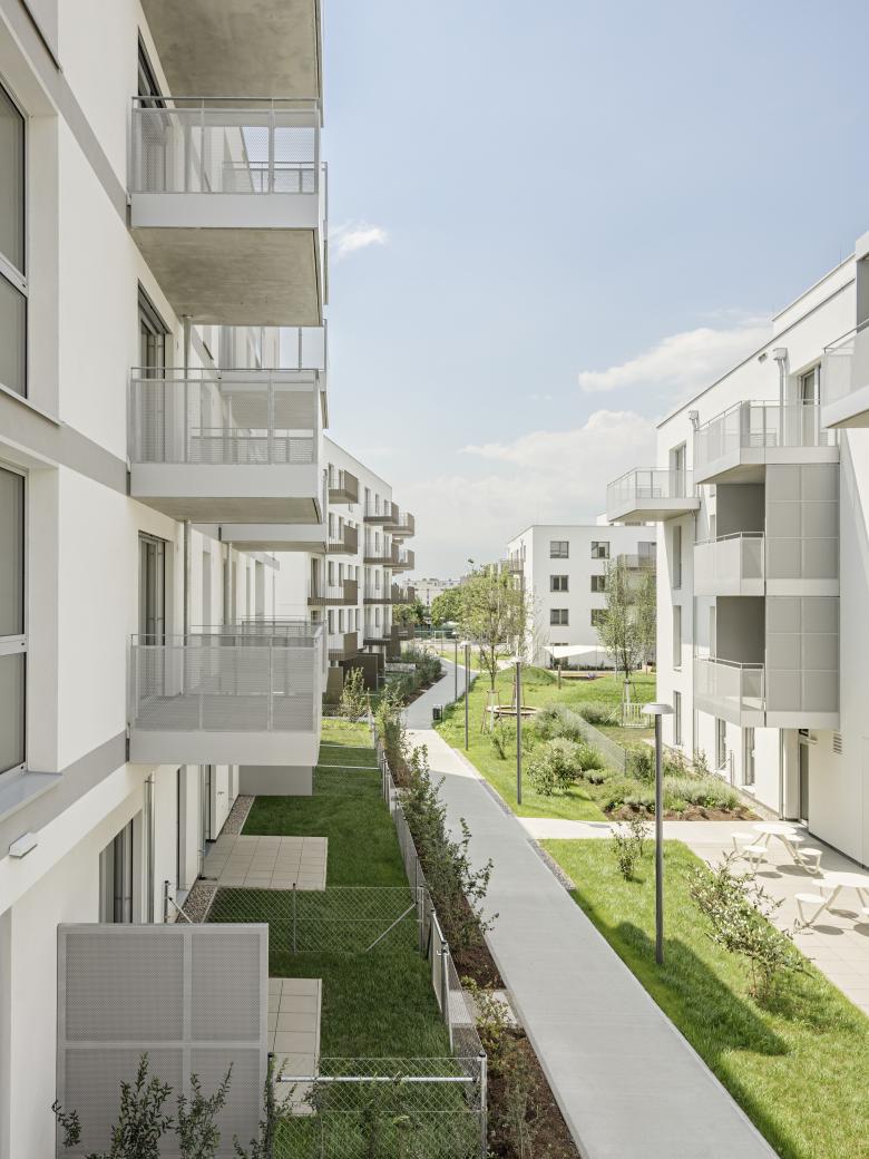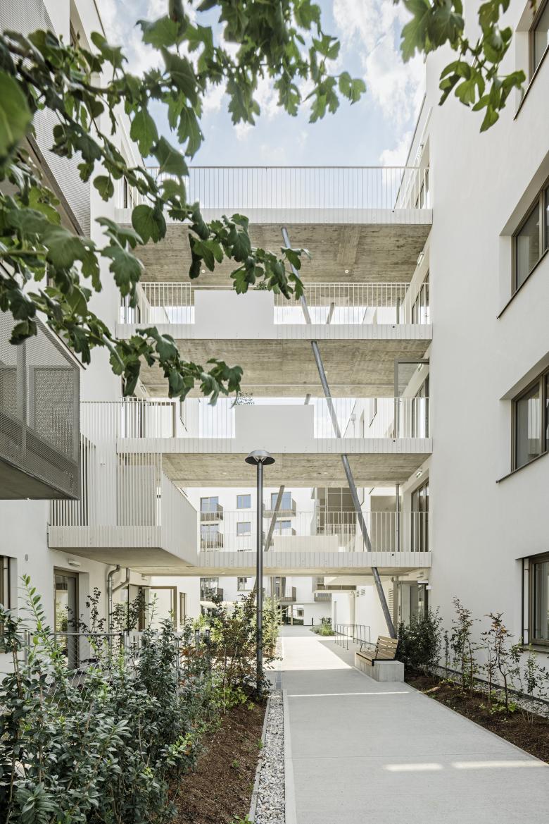 Begleitet von einem nachhaltigen Energiekonzept bleibt das Projekt in der Errichtung ökonomisch und in der Nutzung Kosten- und Verbrauchsgering. Durch den Einsatz von hocheffizienten Wärmepumpen, Photovoltaikanlagen und Bauteilaktivierung in der Gebäudehülle, schaffen wir einen angenehmes Wohnklima, welches durch den großflächig begrünten Freiraum ins Äußere übergetragen wird. Hier wird auch durch die Pflanzung von Obstbäumen, Bereitstellung von Beeten und vielen Aufenthaltsmöglichkeiten zum Urban Gardening und Zusammenkommen im Freiraum animiert.
