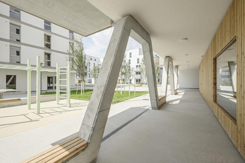 Der Campo Breitenlee „gemeinsam wohnen“ bietet eine vielfältige und inspirierende Wohnumgebung mit einem großen Angebot an unterschiedlichen Wohnformen. Als füllendes Motiv der Lücke zwischen Stadt und Land, setzen synn architekten und Treberspurg & Partner Architekten in diesem Projekt auf eine lockere, kleinteilige Bebauung und ermöglichen dadurch eine klimatisch wirksame gute Durchlüftung, Belichtung und Beschattung, sowie viel Platz für eine üppige Freiraumgestaltung. Durch die zahlreichen sozialen Angebote der Erdgeschoßzone und die grüne Urbanität zwischen den Bauköpern, entwickelt sich hier eine nachhaltige, diverse Wohnkommune.
