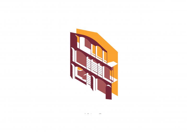 Las dos crujías de can Central corresponden a la casa originaria y a un patio progresivamente colmatado. Se impone el vaciado de esta segunda para revertir el deterioro de las condiciones de habitabilidad. El espacio liberado entre ambas casas se forja parcialmente con tres niveles de terrazas. Por un extremo se abren a sudoeste escalonadamente, por el otro se separan de la fachada para dejar un patio de acceso.