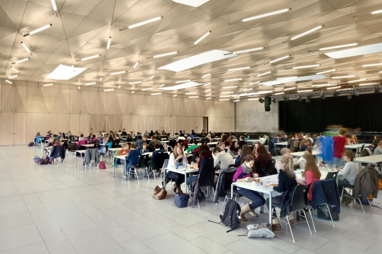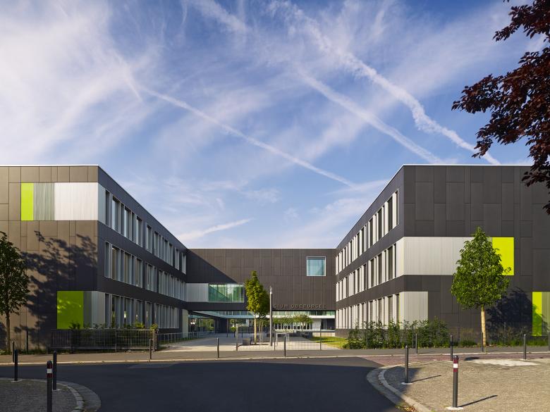Die Stadt Oberursel hat sich für eine Weiterentwicklung des innerstädtischen Standortes des zukünftig 7-zügigen Gymnasiums entschieden. Die besondere Herausforderung des Projekts bestand darin, das relativ große Bauvolumen auf einem knappen Grundstück in den städtebaulichen Kontext zu integrieren. Die Erweiterung umfasst 3 U-förmige Klassenhäuser, einen langgestreckten Riegel mit naturwissenschaftlichen Fachklassen, eine unterirdische 3-fach-Sporthalle, Ganztagsräume, eine Tiefgarage für 120 Stellplätze sowie eine Aula mit Mensanutzung für bis zu 1.700 Schüler.
