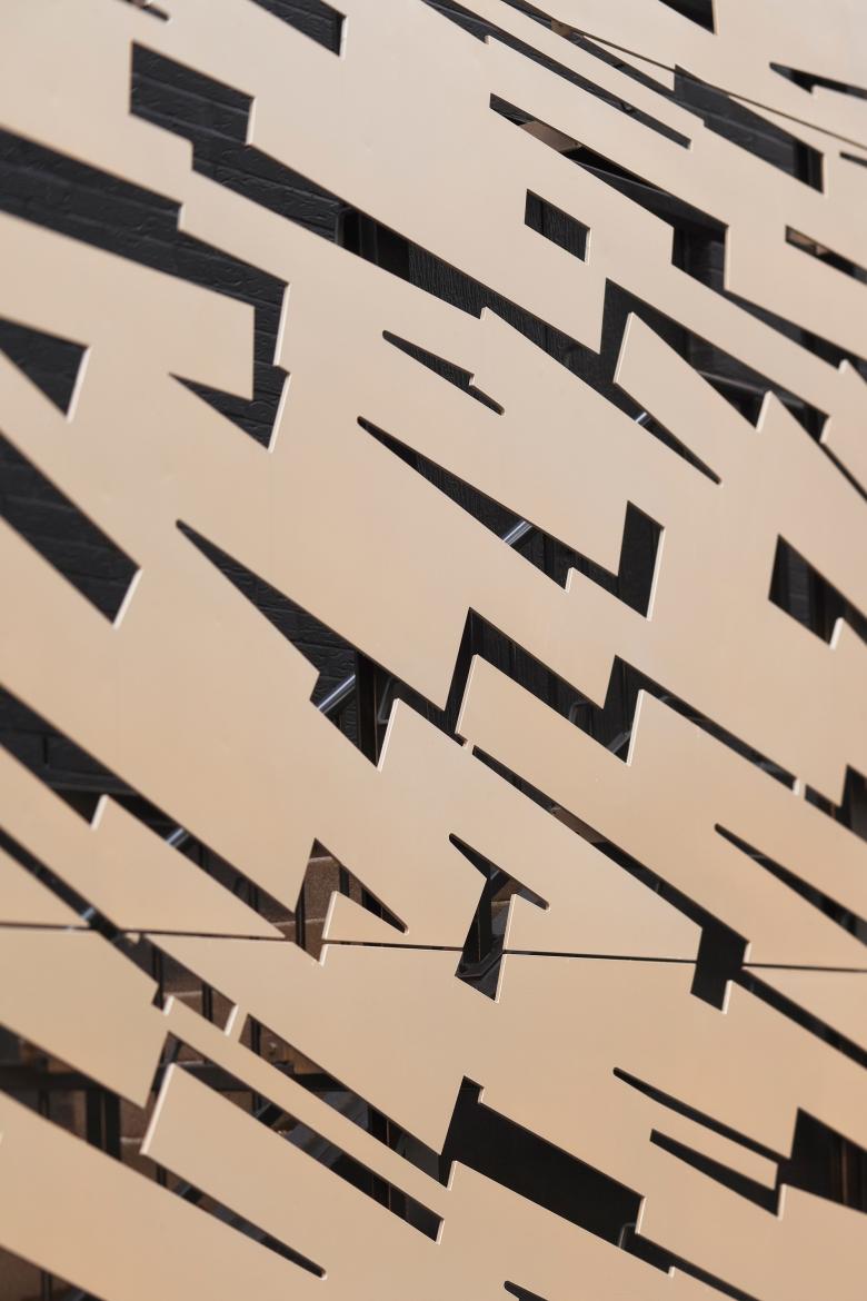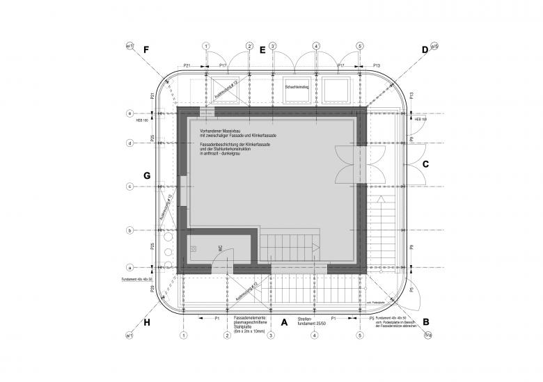 Das unterirdische Pumpwerk wird zur Uferstraße hin mit einer geschwungenen Basalt-Bruchsteinmauer flankiert. Die technischen Aufbauten des neuen Pumpwerks und das Bestandsgebäude erhalten eine bis zu 8 Meter hohe Hülle aus plasmageschnittenem Stahl. Die nahtlose Struktur der perforierten Stahlplatten „umströmt“ die Gebäudeteile. Die filigrane Hülle und die geschwungene Natursteinmauer versinnbildlichen die Themen Ufer und Wasser.