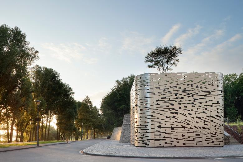 Im Rahmen der Hochwasserschutzmaßnahmen für Köln wurde am Rheinufer südlich von Rodenkirchen ein neues Pumpwerk als technisches Bauwerk errichtet. Aufgabenstellung des Wettbewerbs war die gestalterische Einbindung des größtenteils unterirdischen Bauwerks an dieser sensiblen Schnittstelle zwischen