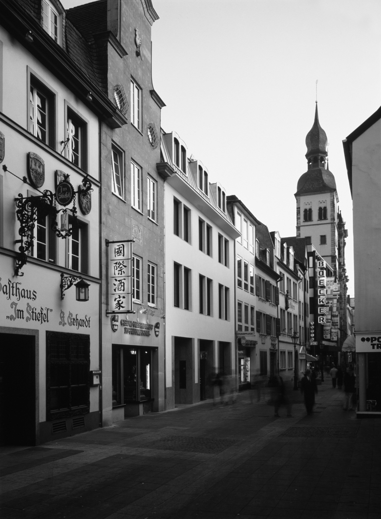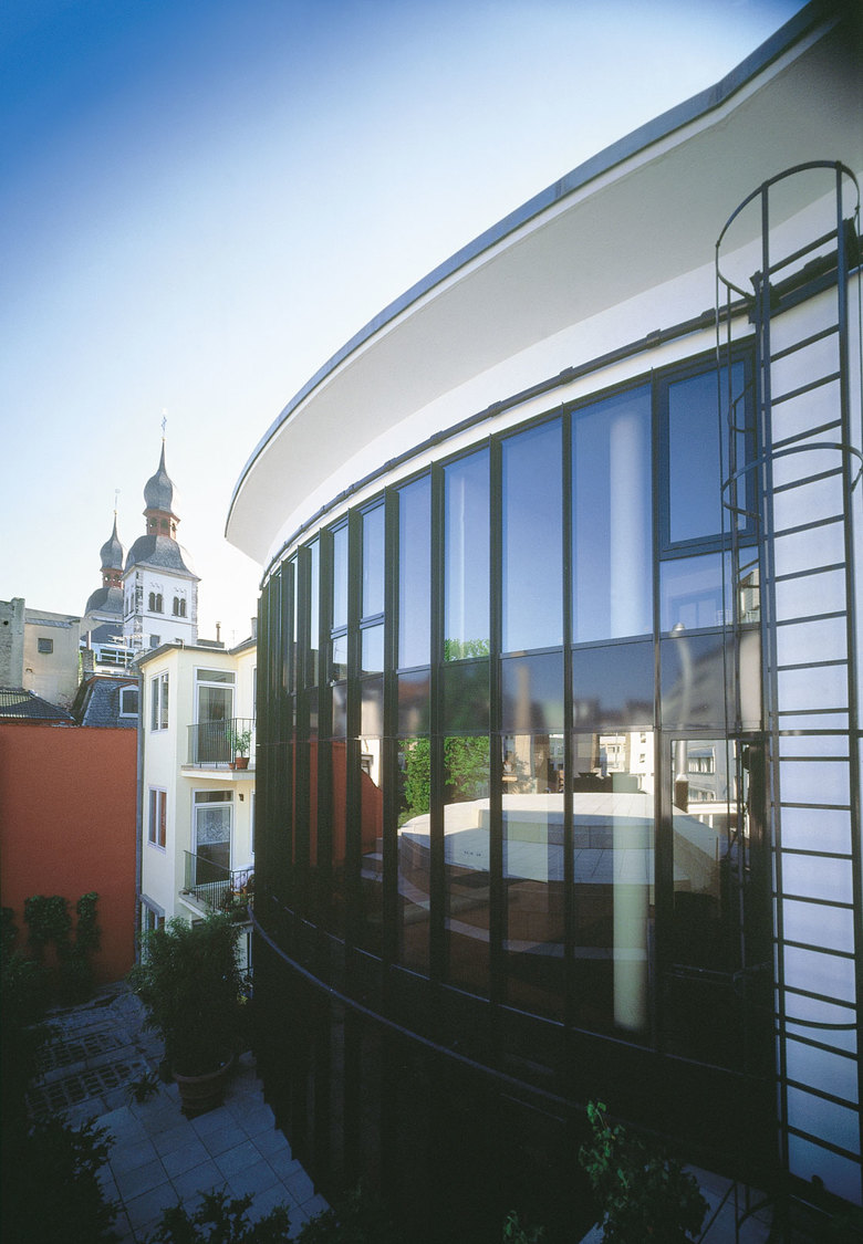Der Wunsch in unmittelbarer Nähe des Geburtshauses des Komponisten einen Kammermusiksaal zu errichten, war Anlass für dieses Projekt. Das Vorderhaus, welches das Volumen und die Traufhöhe der einstigen Bebauung aufnimmt, beherbergt die Sammlung der Stiftung, ihre Verwaltung, Archivräume und Bibliothek. Der Kammermusiksaal mit 199 Sitzplätzen nimmt den Raum des einstigen Hinterhofes ein. Der Weg in den Konzertsaal - das eigentliche Zentrum des Gebäudes - führt durch das Vorderhaus: Von der Bonngasse kommend, gelangt man in ein Entree, das sich konisch zum dahinter liegenden Foyer mit der Garderobe weitet. Durch eine Flügeltür erschließt sich eine umlaufende Galerie und mit ihr der Blick durch einen Arkadenviertelkreis auf die Bühne des Kammermusiksaals.