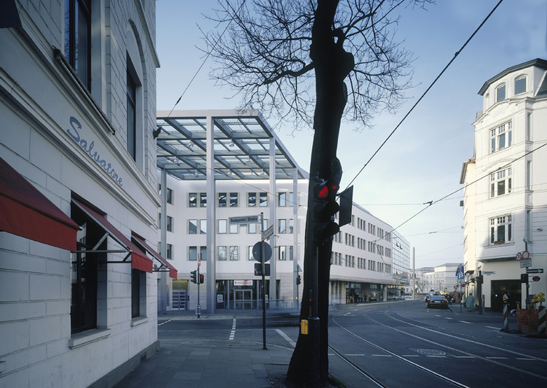 Ausgehend von der städtebaulich vorgegebenen Dreiecksfigur des Berliner Platzes entstand ein neues Gebäude zwischen Sterntorhaus und Stadthaus. Zentrum des neuen Baukörpers ist eine rautenförmige Loggia welche als Entree sowohl zum Neubau, wie zum Stadthaus fungiert.