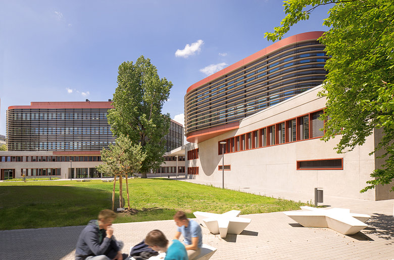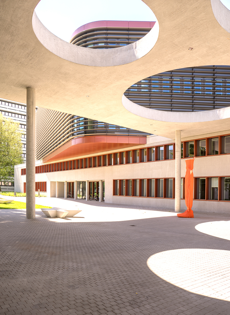 Das Grundstück für die Neubauten liegt an einer städtebaulich und freiräumlich wichtigen und sensiblen Stelle des Campus. Im Norden grenzt es an die Richard Willstätter Allee, eine der Hauptachsen des fächerförmigen Stadtgrundrisses am Übergang zum ehemaligen Fasanengarten an.