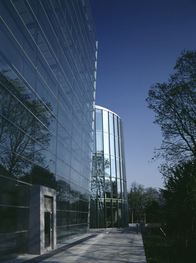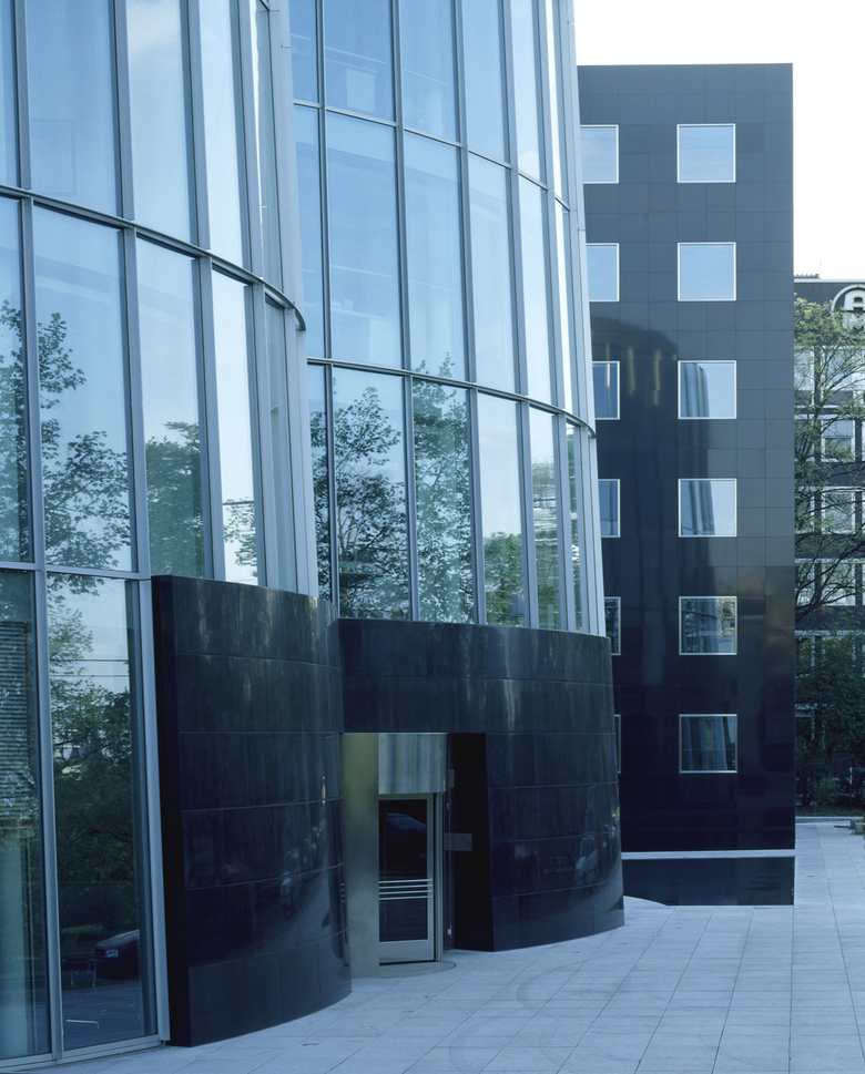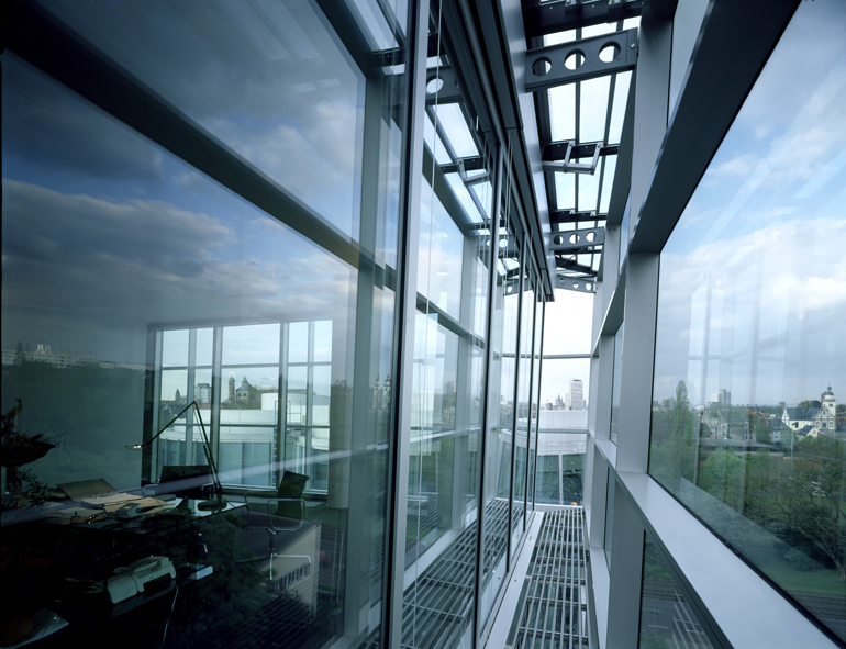 Dreiteiliger Bürokomplex am Kölner Stadtring, dessen reine und skulpturale Formen den Dialog mit der angrenzenden Bebauung der 50er Jahre aufnehmen. Eine thermische Simulation ermöglichte die Optimierung aller Teile der Konvektionsfassade. Trotz weitgehender Transparenz der Verglasungsebenen konnte ein g-Wert von weniger als 0,1 erreicht werden.