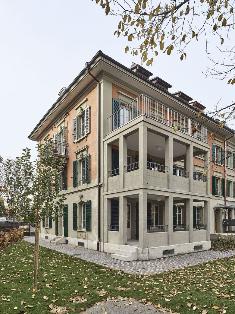 Ein Gebäude aus den 1870-er Jahren wurde lange Zeit als Altersheim genutzt und in den 1960-er Jahren seinem historischen Charme beraubt. Die Rückführung in ein Wohnhaus nutzten wir, um mit viel Forschungsarbeit, mit Erhalt und Rekonstruktion von Bauteilen und mit neuen Elementen wie der Sichtbeton-Veranda fünf unterschiedliche Wohnungen zu realisieren, welche von früher und von heute erzählen.