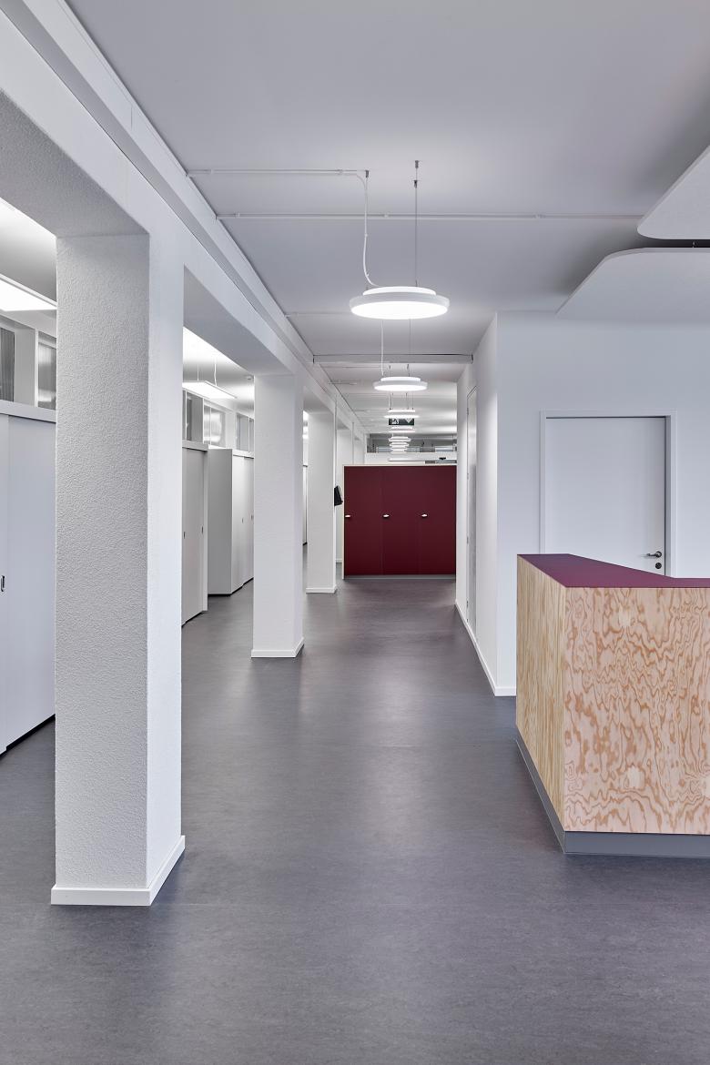 Seit Anfang 2023 bündelt der SZMD seine Kräfte an der Frankenstrasse 1 in Bümpliz, der zweite Standort in den dazugemieteten Räumen im Breitenrain wurde aufgehoben. Für die Umsetzung dieser räumlichen und betrieblichen Konzentration bauten wir zwei Geschosse um und strukturierten diese räumlich neu.