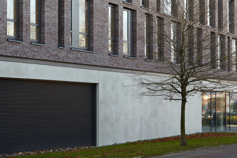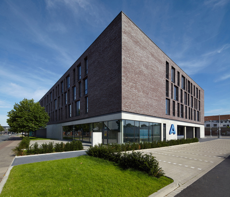 In diesem Zusammenhang steht auch der viergeschossige Neubau an der Stelle eines ehemaligen Autohauses, der mit einem Verbrauchermarkt im Erdgeschoss und darüber liegenden Büros für unterschiedliche Nutzer zur Belebung und städtebaulichen Aufwertung dieses Stadtviertels beitragen will. Der Zugang zum Markt liegt an der Westseite des Gebäudes, in direkter Nähe der Stellplätze. Die Erschließung der Büroetagen erfolgt über zwei Treppenhäuser, die jeweils an den Gebäudeecken entlang der Werner-Bock-Straße untergebracht sind. Die Bürogrundrisse wurden so organisiert, dass auf jeder Etage bis zu vier autarke Mieteinheiten geschaffen werden können.