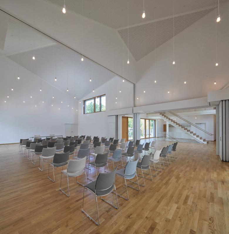 Das Wettbewerbsgrundstück befindet sich in einem sensiblen innerstädtischen Umfeld der Versmolder Innenstadt, welches insbesondere durch die Petri-Kirche, den Kirchplatz und das denkmalgeschützte Kantorhaus geprägt ist. Vor diesem Hintergrund schlägt der Entwurf für das neue Gemeindehaus einen Baukörper vor, der, die Körnung der unmittelbaren Umgebung aufnehmend, sich maßstäblich in den Ort einfügt, ohne dabei seine Zeitgenossenschaft zu verstecken. Diese wird maßgeblich durch eine gefaltete Dachlandschaft bestimmt, welche den Neubau überspannt.