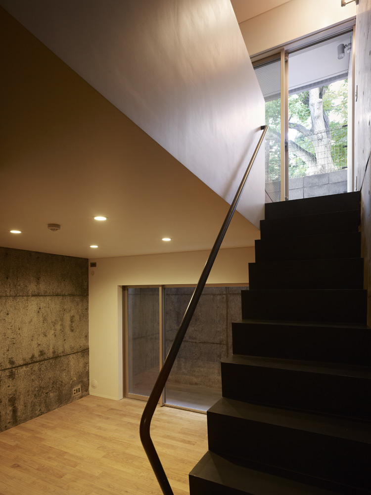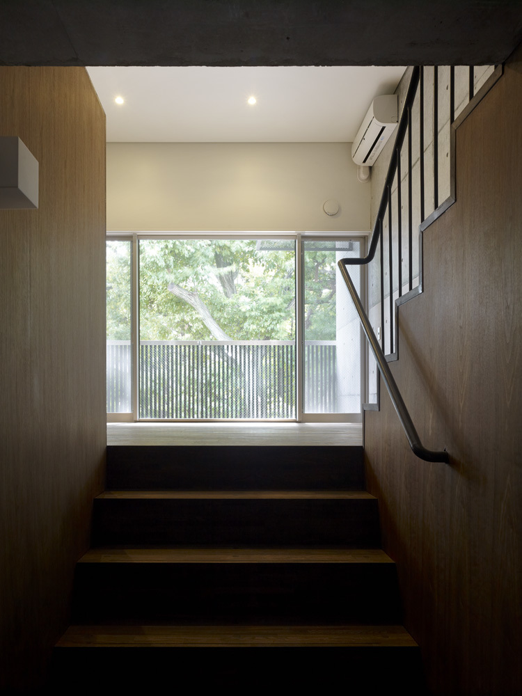 While the plan configuration is quite simple and orthodox, the cross-sectional structure is a bit more complex. Within the volume of the legally determined height, three types of dwellings with different cross-sections are stacked vertically in a puzzle-like manner. The bottom floor is a maisonette type with a basement floor and a first floor, the top floor is a skip-floor type with a loft, and in between is a flat type with an expansive plan. Each unit offers various views of the adjacent greenery. The name of the building is "BALCONE" because it resembles the relationship between the stage and the bleachers of a theater. The company decided to use the name "Toyama" in the name of the city. It is an apartment complex that serves as a viewing platform for the attractive green space on the stage.