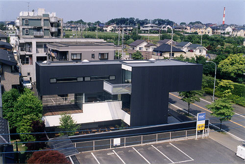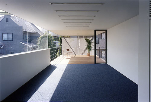 1F Cafe, 2F SOHO, 3 A mixed-use building consisting of a private residence on the first floor. Each floor is planned to appropriately incorporate a different external environment: a courtyard in the same area as the café, a terrace flanking the SOHO, and a courtyard located in the center of the residence.