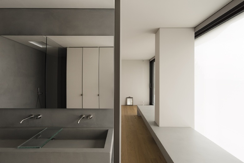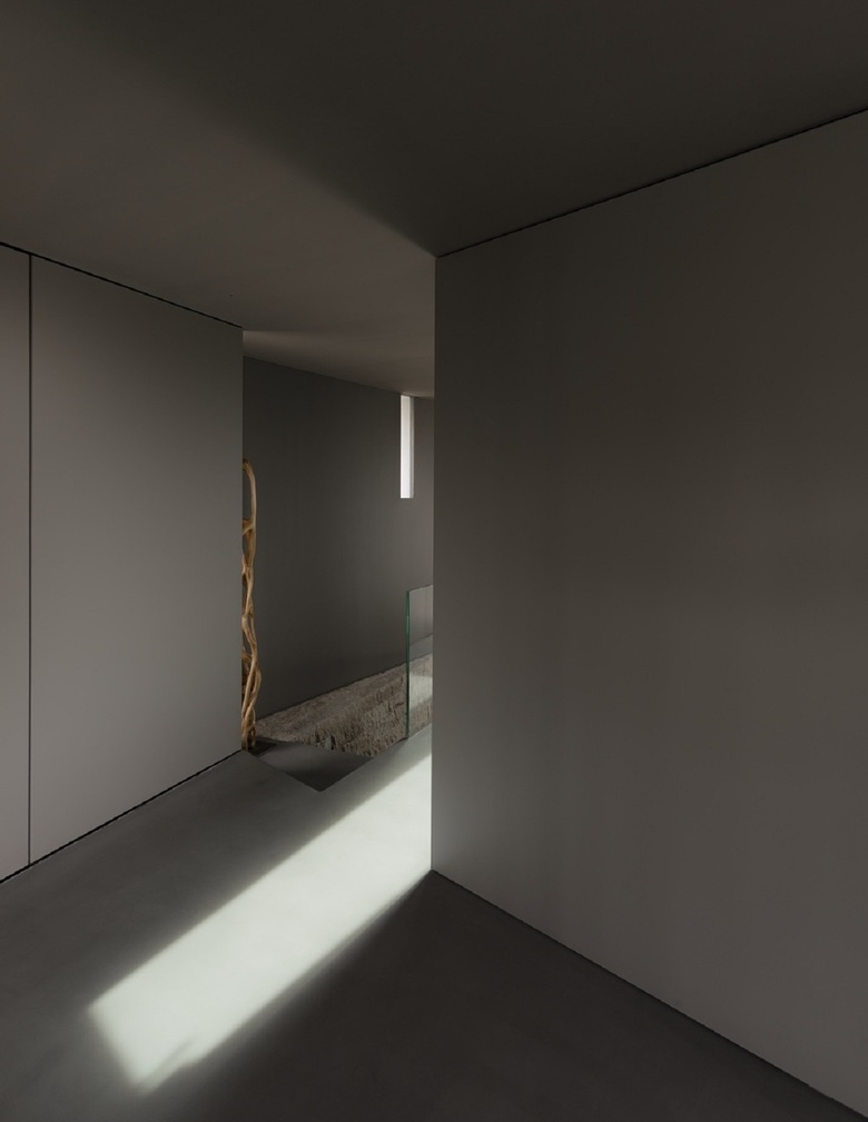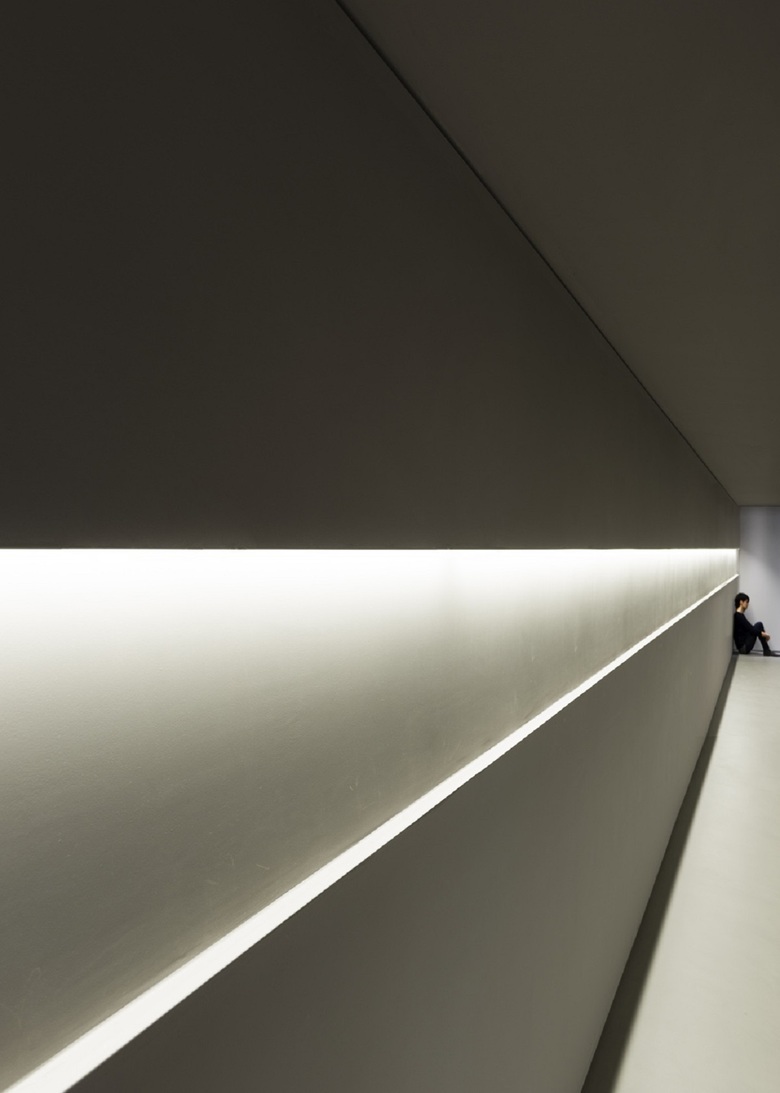 Un ulteriore piano di controllo del progetto è stata l'attenzione posta alla dinamica delle linee naturali di luce e ombra che si disegnano per terra nelle diverse ore del giorno. Il pavimento di cemento del livello superiore enfatizza e pone in risalto il contrasto tra chiaro e scuro, i confini qui al pomeriggio appaiono netti e precisi. Il legno del piano inferiore al contrario assorbe e attenua le differenze, i toni sono più sfumati, l'atmosfera più riposante.