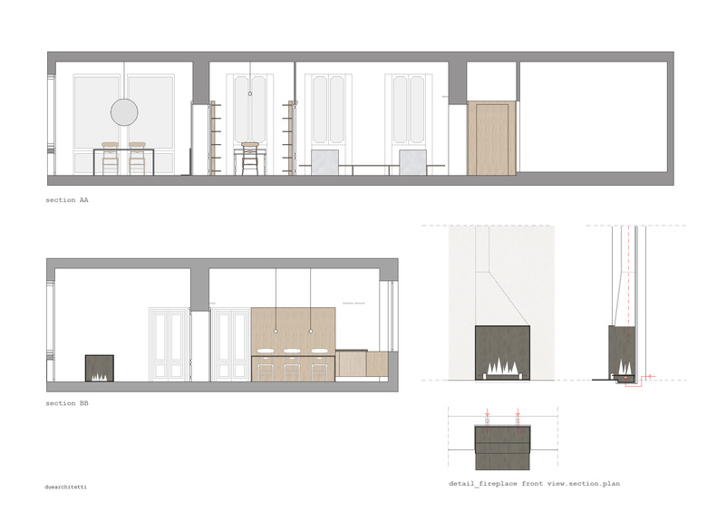 Una superficie continua che ci accompagna in tutti gli ambienti dialogando in modo complementare con il soffitto in legno.