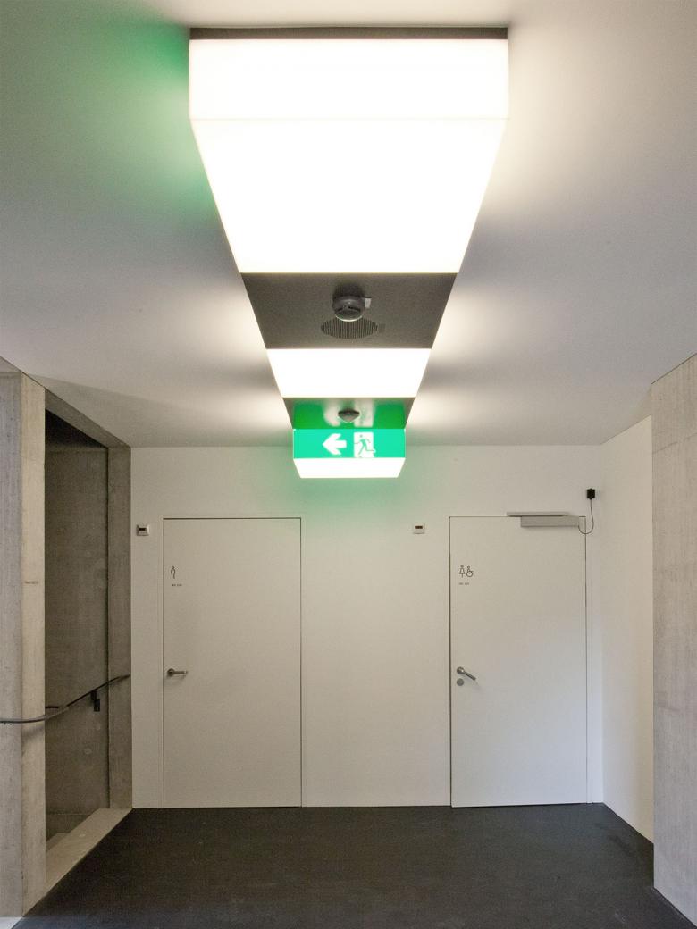 Das als Forschungs- und Innovationsplattform konzipierte Gebäude gliedert sich in ein infrastrukturelles Bauwerk sowie die daran angegliederten experimentellen Büro- und Wohnmodule. Um das im Zentrum des permanenten Gebäudeteils liegende Atrium gliedern sich die allgemeinen Nutzungen an. Die Beleuchtung ist in die abgehängte offene Ringdecke integriert und erlaubt eine diffuse Allgemeinbeleuchtung die hinter der Struktur angeordnet ist und eine gerichtete Akzentbeleuchtung, die in die Struktur eingehängt ist. Im Atrium und der Erschliessung bildet die Beleuchtung eine formale Einheit mit der Architektur.