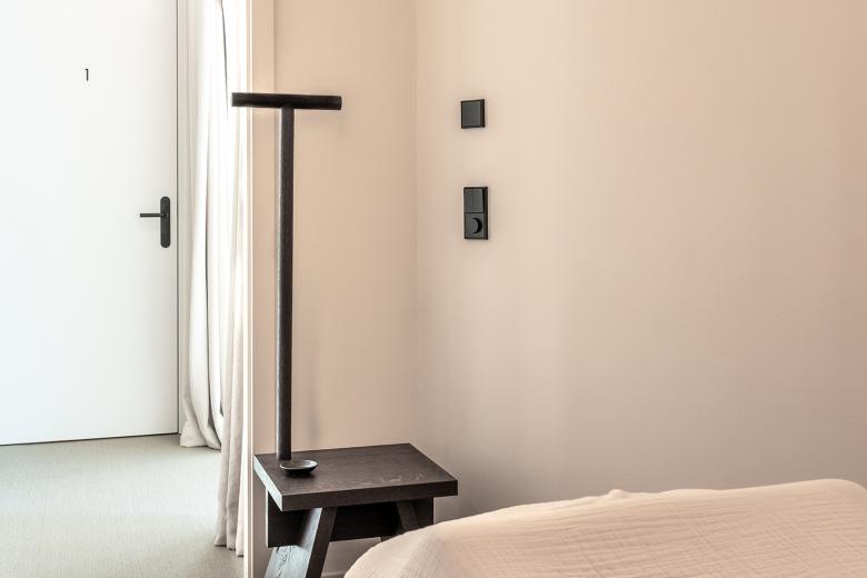 Die Technik bleibt dezent im Hintergrund und unterstützt die Atmosphäre auf subtile Weise. Die JUNG Schalter und Steckdosen der Serie LS 990 in Graphitschwarz matt fügen sich mit ihrer mattierten Oberfläche stimmig in das Gestaltungskonzept ein. Dimmer ermöglichen eine flexible Lichtsteuerung, die perfekt auf die unterschiedlichen Bedürfnisse der Massageräume abgestimmt ist.