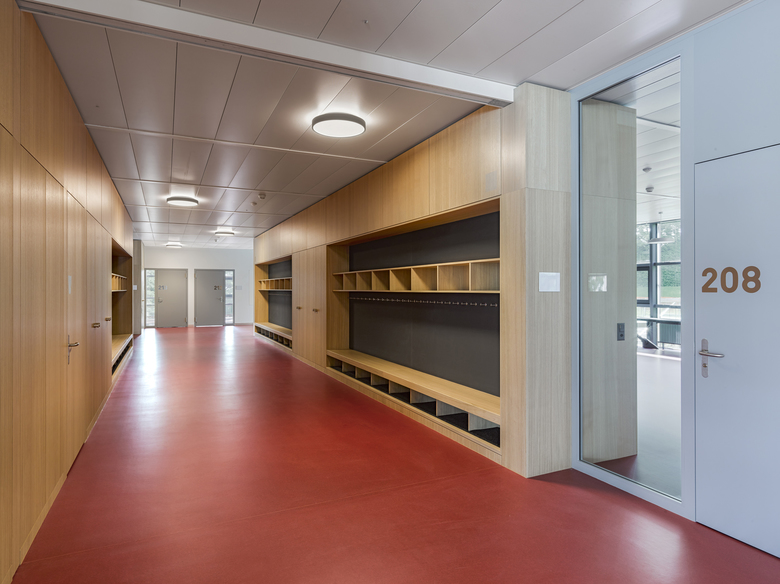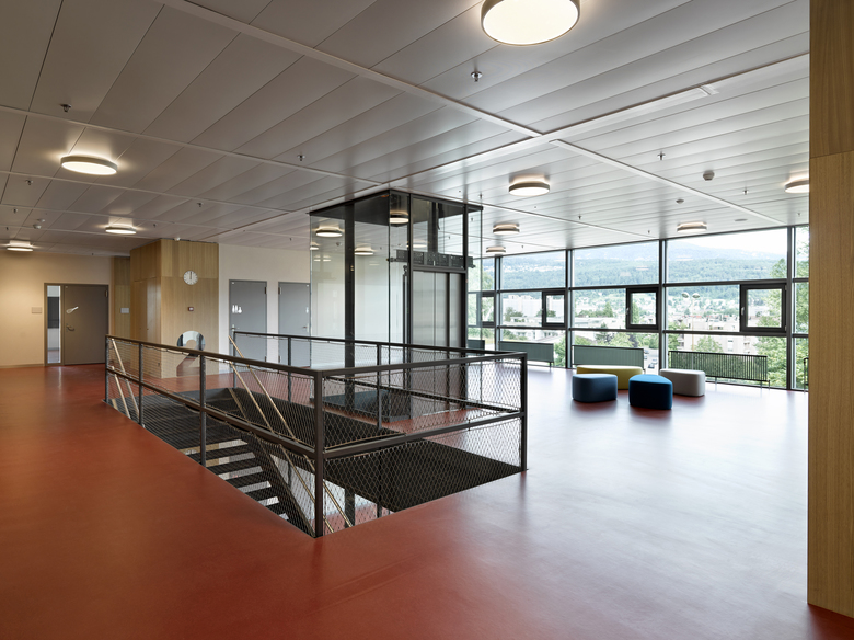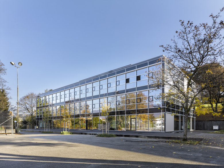 Der Schulhausbau mit integrierter Turnhalle, aus dem Jahre 1969, galt es der neuen Nutzung durch die Sprachheilschule anzupassen. Alter, mangenlnder Unterhalt und die neuen gesetzlichen Anforderungen führten zu einem umfassenden Umbau. Bis auf das in Ortbeton ausgeführte Untergeschoss, den Stahlbau und die Deckenplatten wurde das Gebäude komplett rückgebaut. Dadurch konnte der Grundriss optimiert und einem Neubau gleich, die Haustechnik und Ausbauarbeiten umgesetzt sowie statische Verstärkungen eingebaut werden.
