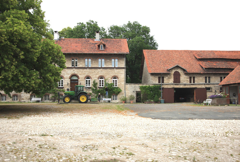 Der als Denkmal geschützte Gutshof am Elm dominiert den Ort auf eindrucksvolle Weise.