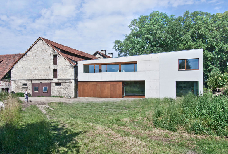 Die Mauerwerkswände des Magazins wurden weitgehend erhalten und mit einer Holzkonstruktion innerhalb und einer Betonkonstruktion außerhalb ergänzt. Durch eine leichte Drehung nach Süden entstehen helle Wohnräume.