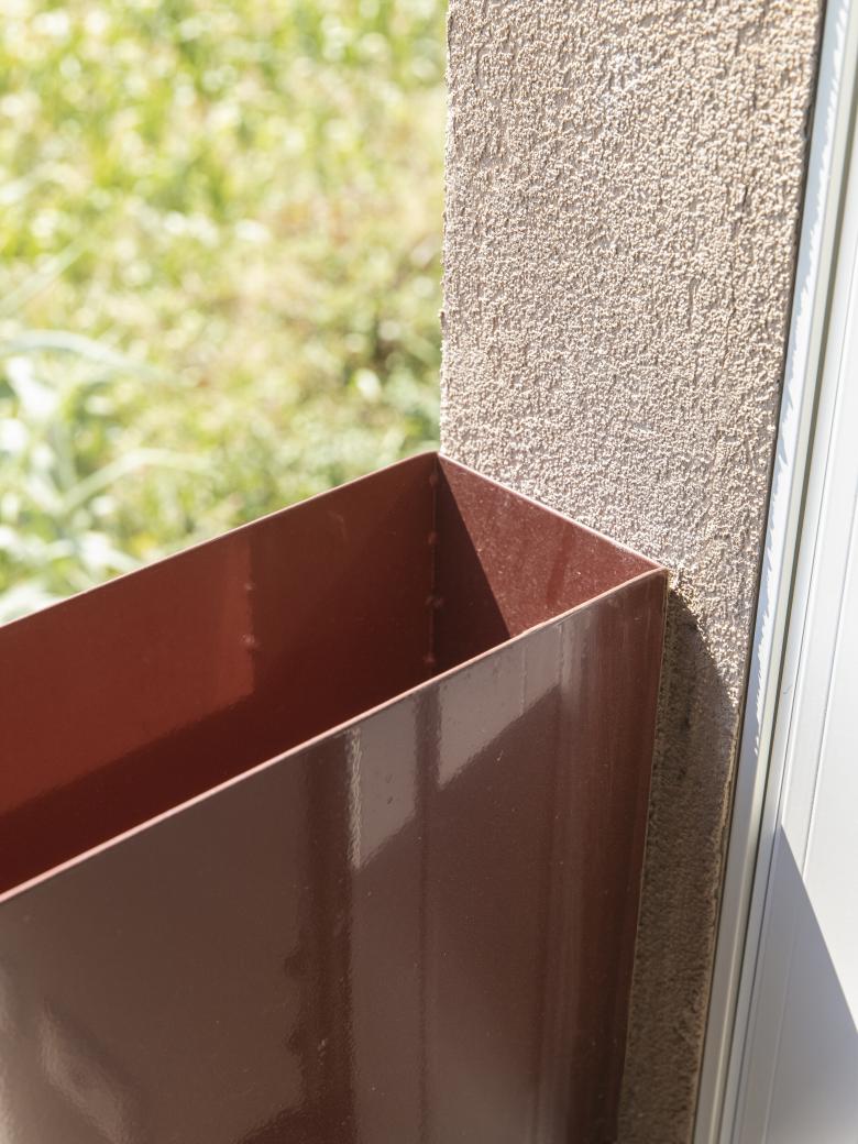 The public room has a wooden side that establishes a relation with the garden and a metal front that denies the hostile side border.