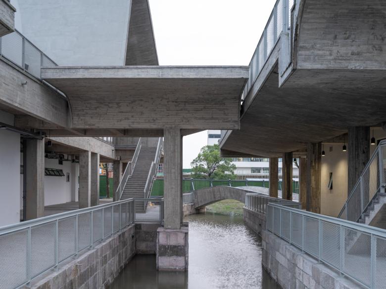 Since there are no separate zones for teaching facilities and living quarters typical for a college campus, all the buildings at Liangzhu are connected by covered walkways and conceptually woven into a single piece of architecture. Due to the habit of hanging laundry in the dormitory balconies, this mixed-use spatial organization calls for a tidier than usual appearance for the dormitories. A continuous metal louvre is thus devised on the building exteriors to screen off laundry as well as air conditioners while serving as sunshades. On the rooftops of the dormitories, we designed a series of semi-outdoor spaces named “view-finders,” which is aimed at further enriching the campus life of Liangzhu.