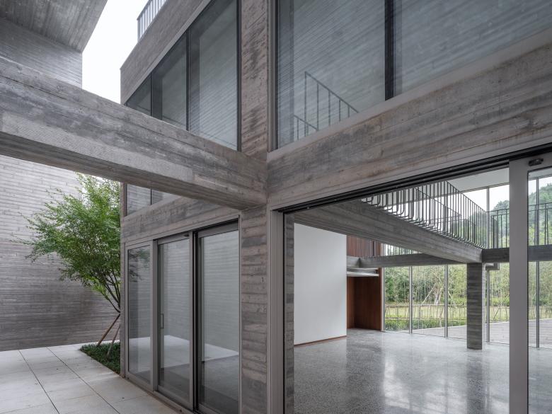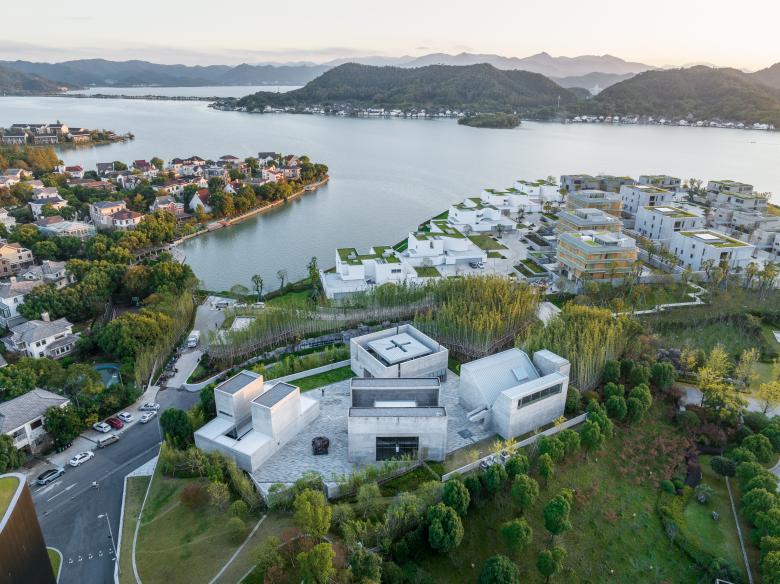 The Education Forum at Dongqian Lake in Ningbo is a community that includes a convention center, a hotel, an art museum, villas, and other facilities. The owner is passionate about education as well as art. A group of four studio-houses are built specifically to accommodate visitors, especially scholars or artists who may come for a relatively extended period of time to conduct research and/or work on creative projects.