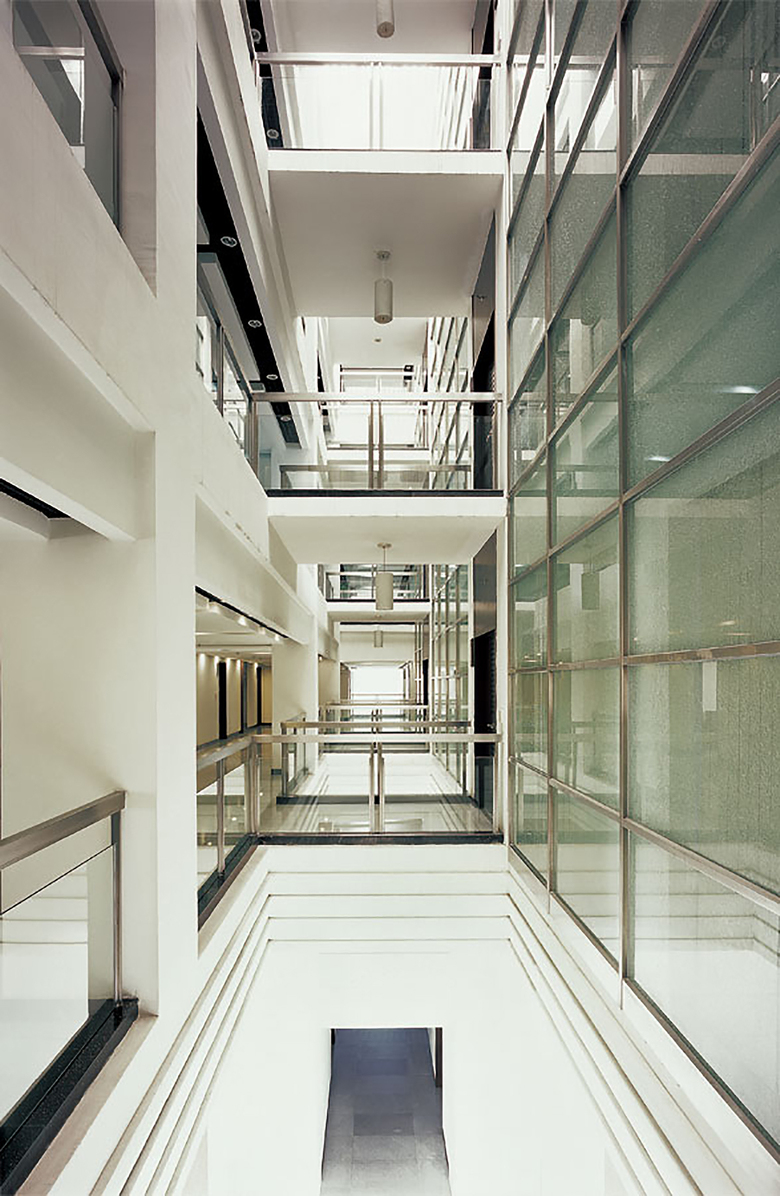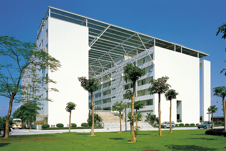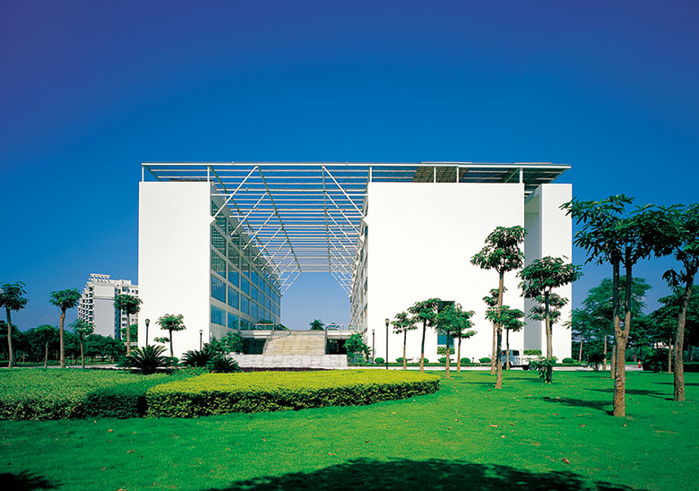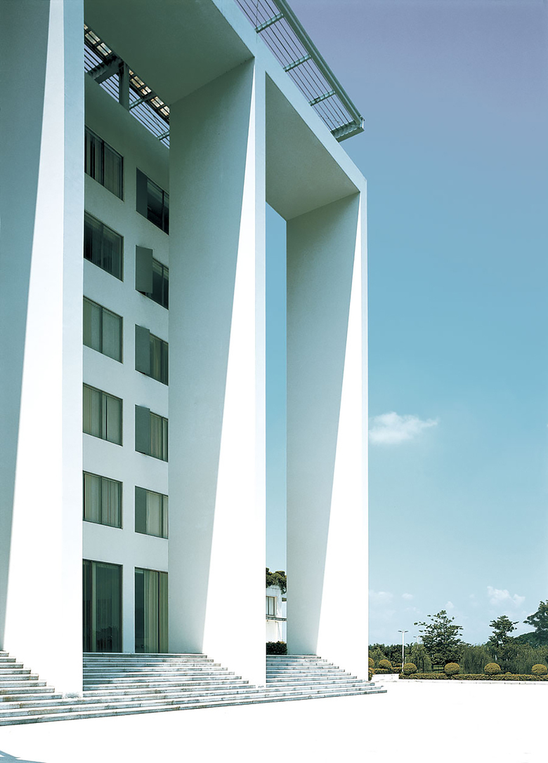 Shipai is one of the thirty-three townships of Dongguan City in the Pearl River Delta area, which is known for its heat and humidity. The town’s administrative center design responds to local weather conditions to achieve a regional architectural quality of a sort that has faded greatly with the introduction of air conditioning in the 1980s. The building is sliced east–west into three thin layers for better natural ventilation. The frame-colonnade on the south side functions as a sun-shading device while creating an appropriate governmental image. The horizontal louvers over the complex are to reduce heat gain on the roof as well as to define public spaces between the layers.
