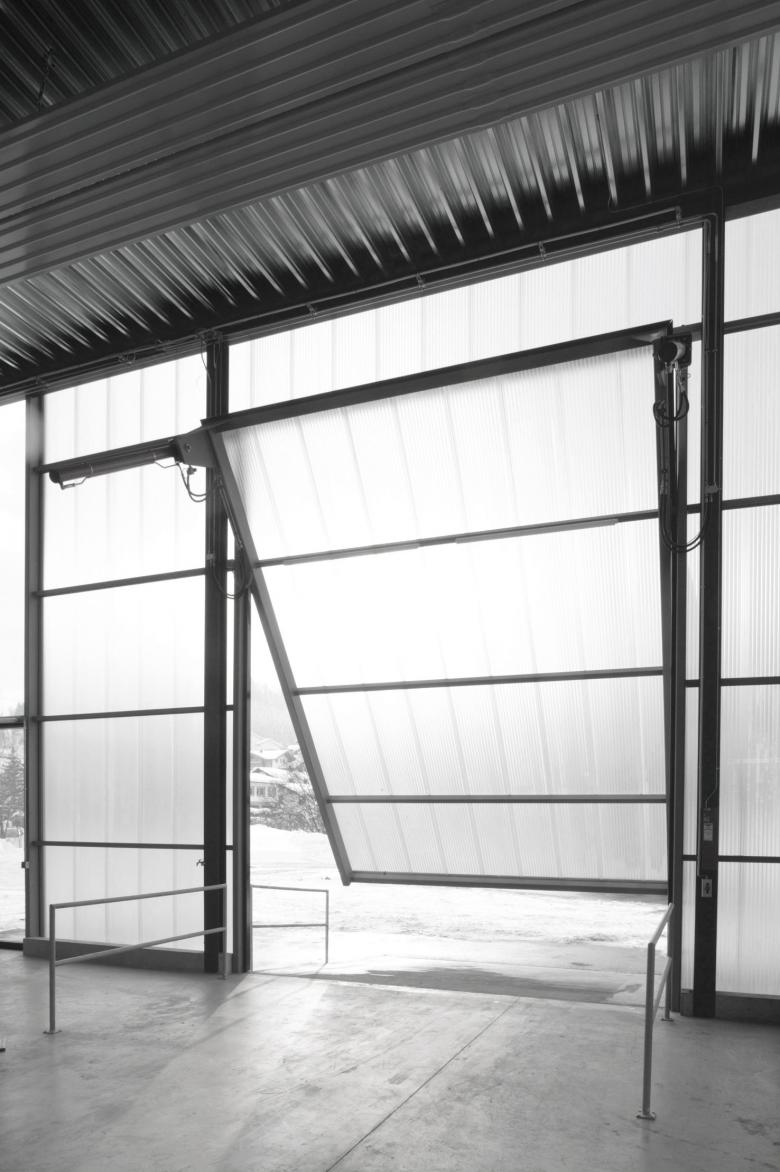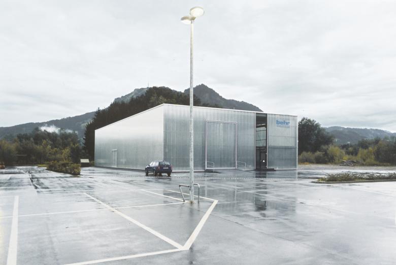 Für die neue Fertigungshalle eines Anlagenbauers stand am nördlichen Ortausgang von Blaichach ein ehemaliges Schrottplatzgelände zwischen Bundesstrasse und Bahnlinie zur Verfügung. Der behördlichen Auflage, das Grund-stück vollflächig zu versiegeln, wurde durch Asphaltieren des Untergrundes Rechnung getragen. Ein leichtes Ab-lösen vom Boden verleiht dem Baukörper einen schwebenden Charakter und sorgt im Überschwemmungsgebiet der nahen Iller für zusätzliche Sicherheit.