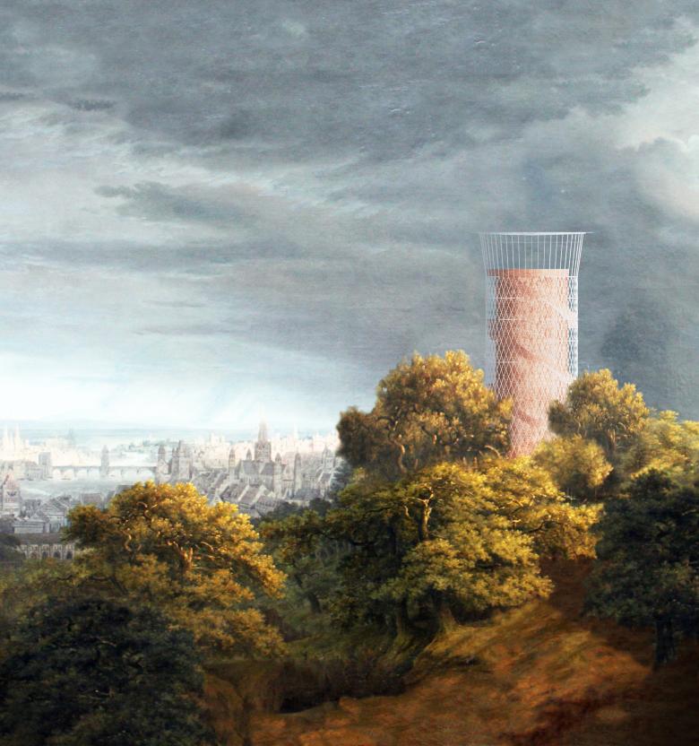 Auf dem Schellenberg in Donauwörth, in unmittelbarer Nähe zum Bodendenkmal „Sternschanze“, soll ein neuer Wasserhochbehälter entstehen. Das Konzept sieht die Errichtung eines turmartigen Bauwerkes vor, wobei es diese Bauform erlaubt, der geforderten Wirkung als Landmark gerecht zu werden. Dabei spielt der Baukörper mit den historischen Begebenheiten des Ortes. Höhenzüge dienten historisch gesehen als strategisch wichtige Orte. In Folge dessen entstanden dort Wehranlagen mit Türmen als vertikale bauliche Struktur, die weithin sichtbar waren. Auch der Schellenberg war gekennzeichnet von einer Wehranlage, deren geschichtlich bedeutsame Überreste heute als „Sternschanze“ nachvollziehbar sind. Damit verbunden dient das gelerne Bild historischer Wassertürme als weitere Referenz. Diese weisen aufgrund der notwendigen Höhenlage der Wasserbehälter eine starke Vertikalität auf und werden dabei zum stadt- oder landschaftsprägenden Element. Die Versorgung der Bevölkerung wird inszeniert.