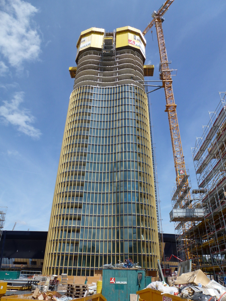 Die Hochhäuser bestehen aus einem klassischen Skelettbau-Tragwerk aus Stahlbeton. Sie werden jeweils durch einen quadratischen Stahlbetonkern ausgesteift, welcher vorauskletternd erstellt wurde. Die vertikale Lastabtragung geschieht via Kern und zwölf hinter der Fassade über die gesamte Gebäudehöhe durchlaufenden Stützen.