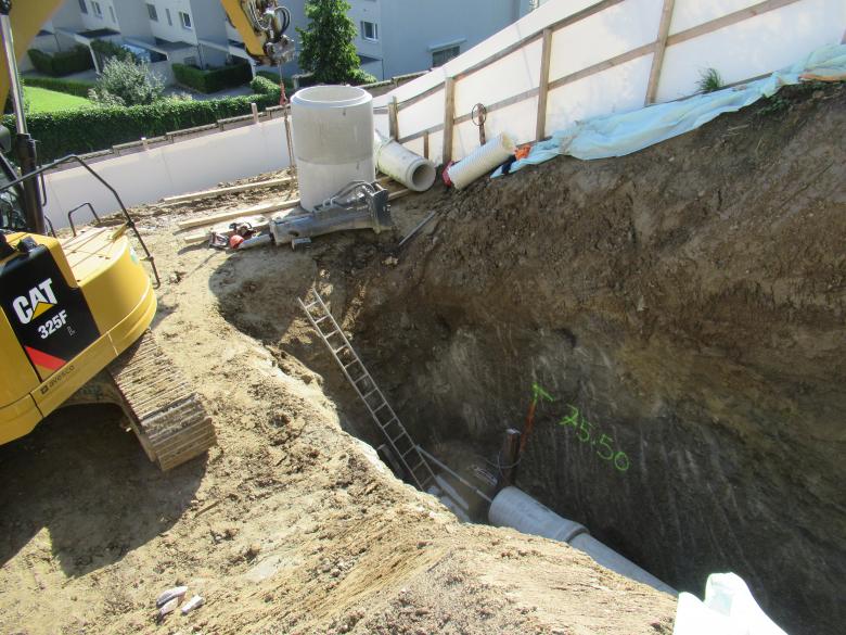 Die bestehende Abwassersammelleitung der Gemeinde Wädenswil und die Gashauptleitung verlaufen durch die bestehende Bebauung. Durch die Anordnung der Tiefgarage und die Wahrung der Entsorgung muss die Mischwasserleitung DN 500 auf 200 m vorgängig umgelegt werden. Die horizontale Linienführung lehnt sich an die Grundstücksgrenze und vorhandene Stützbauwerke. Durch die Hanglage ist eine der neuen Umgebung angepasste spezifische vertikale Linienführung unumgänglich.