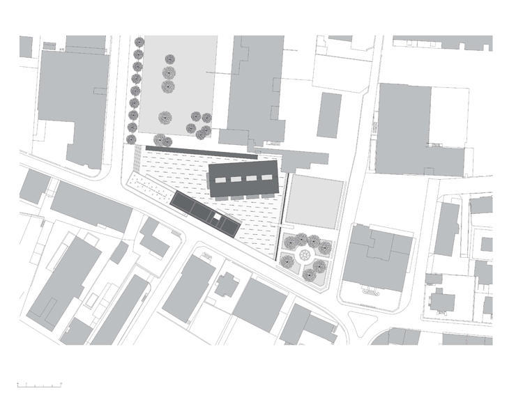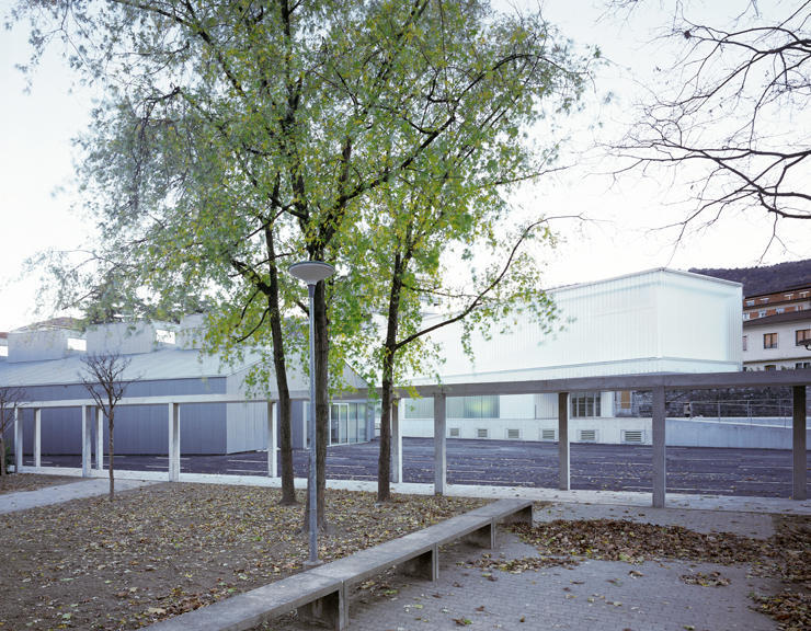 Aussenraum Aus dem Niemandsland entsteht ein neuer Ort – Das M.A.X.Museo entsteht aus dem Willen, dem Graphiker Max Huber ein Museum für darstellende und angewandte Kunst zu widmen. Die Stadt Chiasso stellte als Standort für das neue Museum das Areal einer seit Jahren leerstehenden Garage zur Verfügung. Diese Industriebrache, ein Niemandsland mitten im Stadtgefüge, zwischen Theater und Schulquartier, wurde einer Gesamtplanung unterzogen: Die Vision eines neuen Ortes entstand. Das Museumsprojekt wurde zum Katalysator, zum Kristallisationskern, eines neuen Kulturquartiers von überregionaler Bedeutung.
