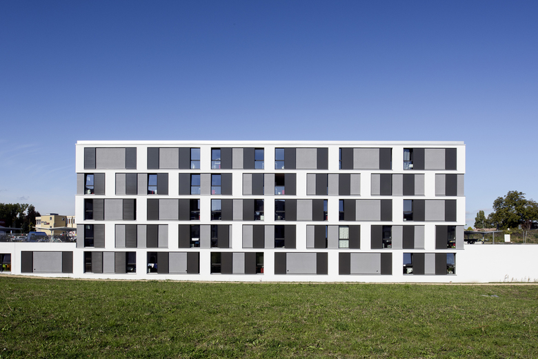 Conçue en deux bâtiments distincts, la Résidence offre 186 studios, 300m2 d'espaces commerciaux et un parking souterrain.