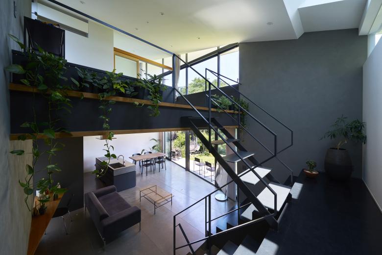 The site originally had a 1.5-meter difference in elevation in the center, so four floors were shifted by half a story to create a skip-floor cross-section, creating a gradual connection between rooms. In addition, skylights were placed on the stairs connecting the floors to ensure stable light and ventilation through the upper and lower floors.