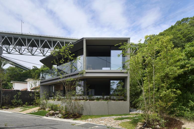 The architecture is designed to maximize the richness of the environment by opening up to the panorama, and by arranging the two guest rooms not in parallel but intertwined three-dimensionally, the building offers multi-directional views that straddle the upper and lower floors.