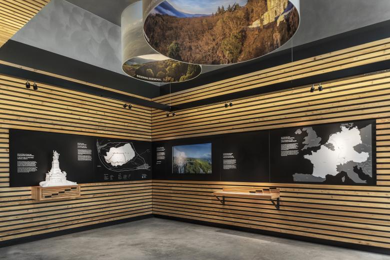 Der Niederwald bei Rüdesheim ist das Tor zum Welterbe Kulturlandschaft Oberes-Mittelrheintal, das sich von Bingen bis Koblenz auf einer Länge von 67 Kilometern erstreckt. Zum 250-jährigen Bestehen wurde der ursprüngliche Landschaftspark wiederhergestellt und das international beliebte Ausflugsziel durch ein Besucherzentrum ergänzt. jangled nerves zeichnet sich verantwortlich für die Gestaltung der Innenarchitektur des Informationszentrums mit Gastronomiebereich. Im angrenzenden Parkwald wurde zudem ein Leit- und Orientierungssystem verwirklicht.