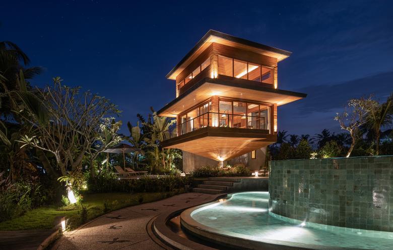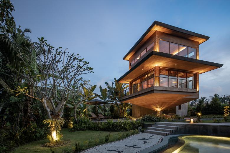 Mit dem Projekt Bird Houses hat der renommierte Architekt Alexis Dornier eine außergewöhnliche Unterkunft geschaffen, die sich harmonisch in die natürliche Umgebung inmitten eines tropischen Regenwaldes auf Bali einfügt. Das Ensemble, das durch seine leichte, fast schwebende Bauweise an moderne Baumhäuser erinnert, besteht aus drei Gebäuden, die auf Stelzen errichtet wurden.