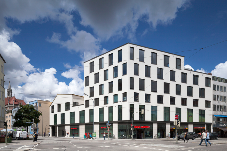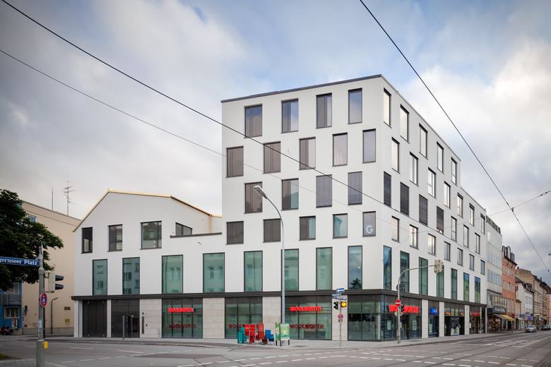 Auf dem rund 2.000 Quadratmeter großen Grundstück an der Tegernseer Landstraße entstand so ein Büro- und Geschäftshaus mit 3.630 Quadratmeter Einzelhandelsfläche im Untergeschoss, Erdgeschoss und im 1. Obergeschoss sowie ca. 1.400 Quadratmeter Bürofläche in den Stockwerken zwei bis fünf. Besonders hervorzuheben ist, dass zugunsten von Verkaufsflächen keine Tiefgarage geplant, sondern das Parken in das 2. Obergeschoss verlegt wurde.